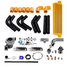 A: Complete turbo kits normally include the manifold, turbocharger, intake, down pipe, fuel management unit and all lines and hoses needed. You need to purchase intercoolers, piping, blow-off valves separately in most cases, unless otherwise noted in our product descriptions.